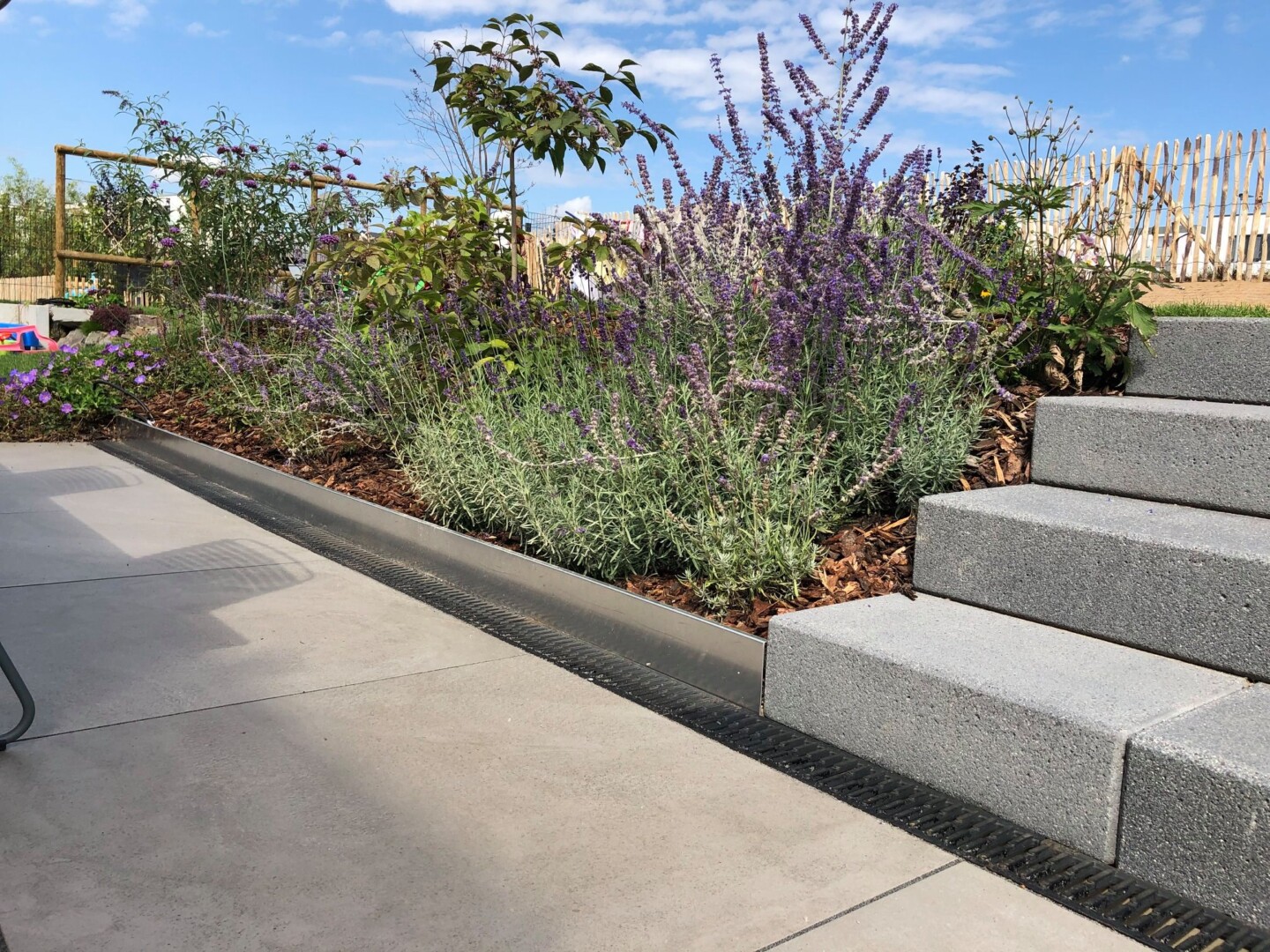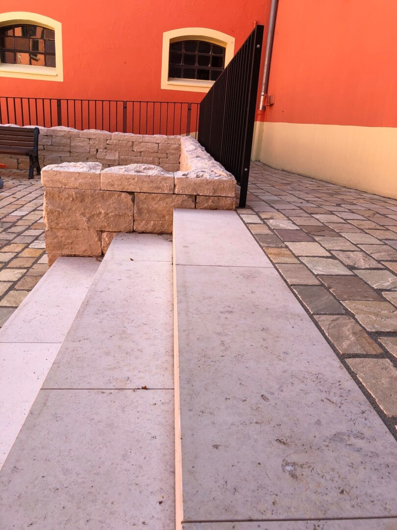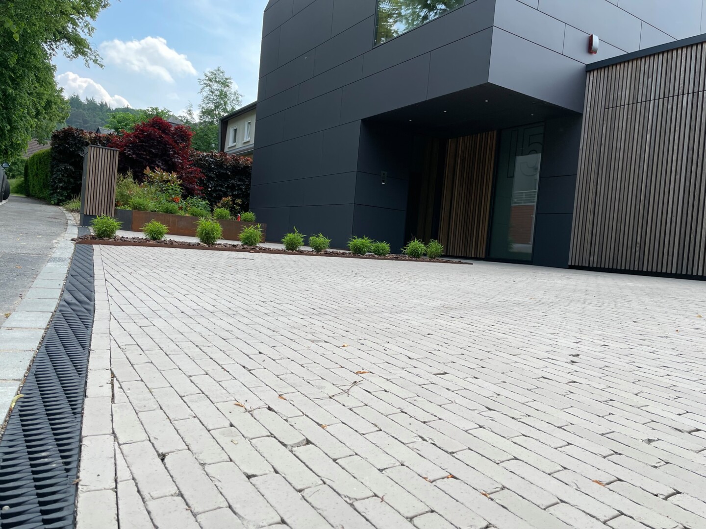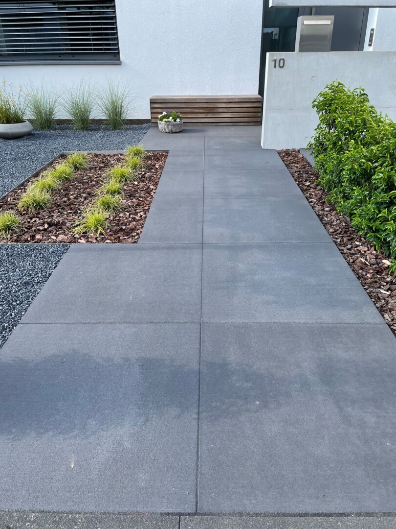 - Großformatplattenweg in Drainbeton