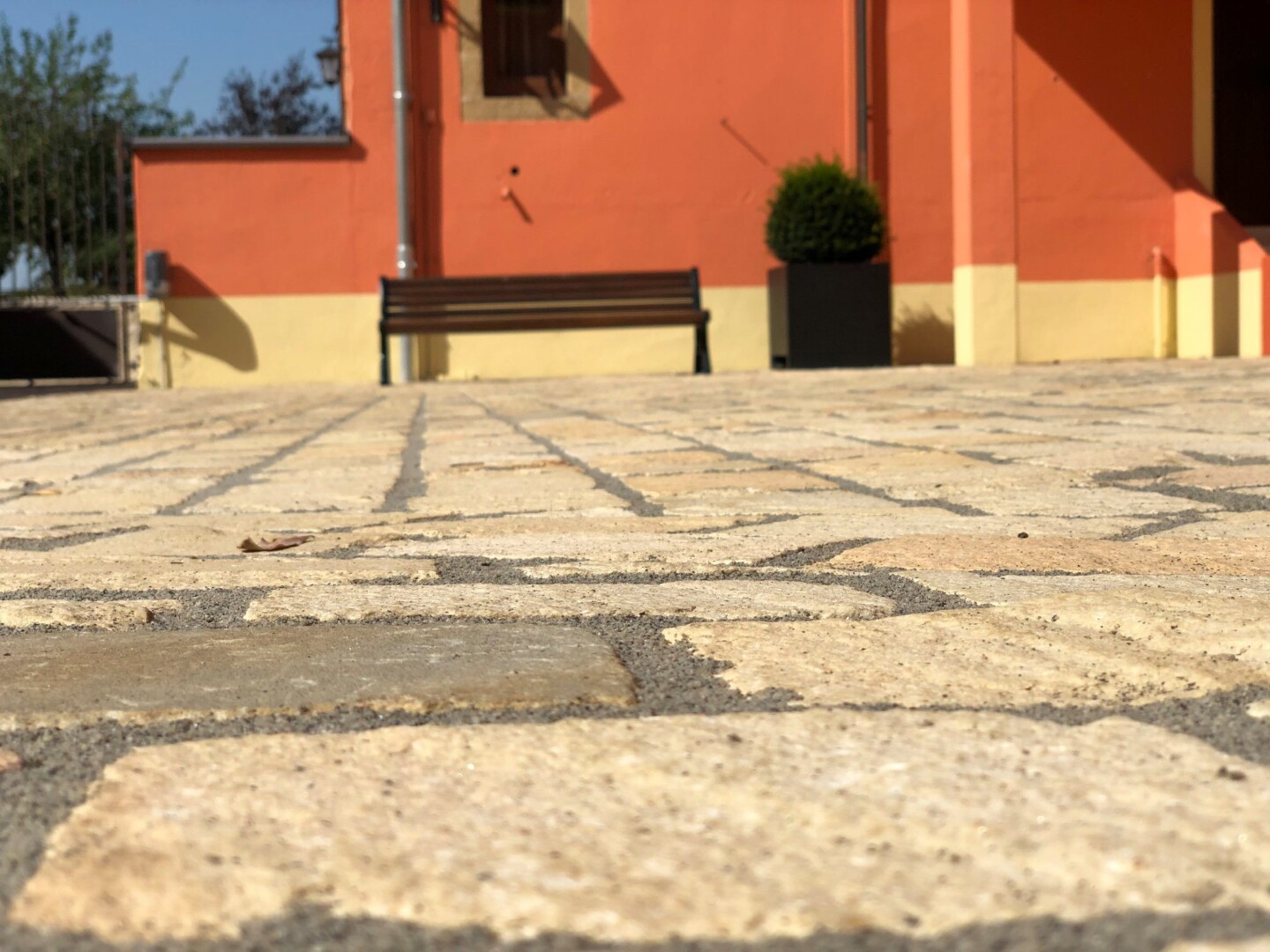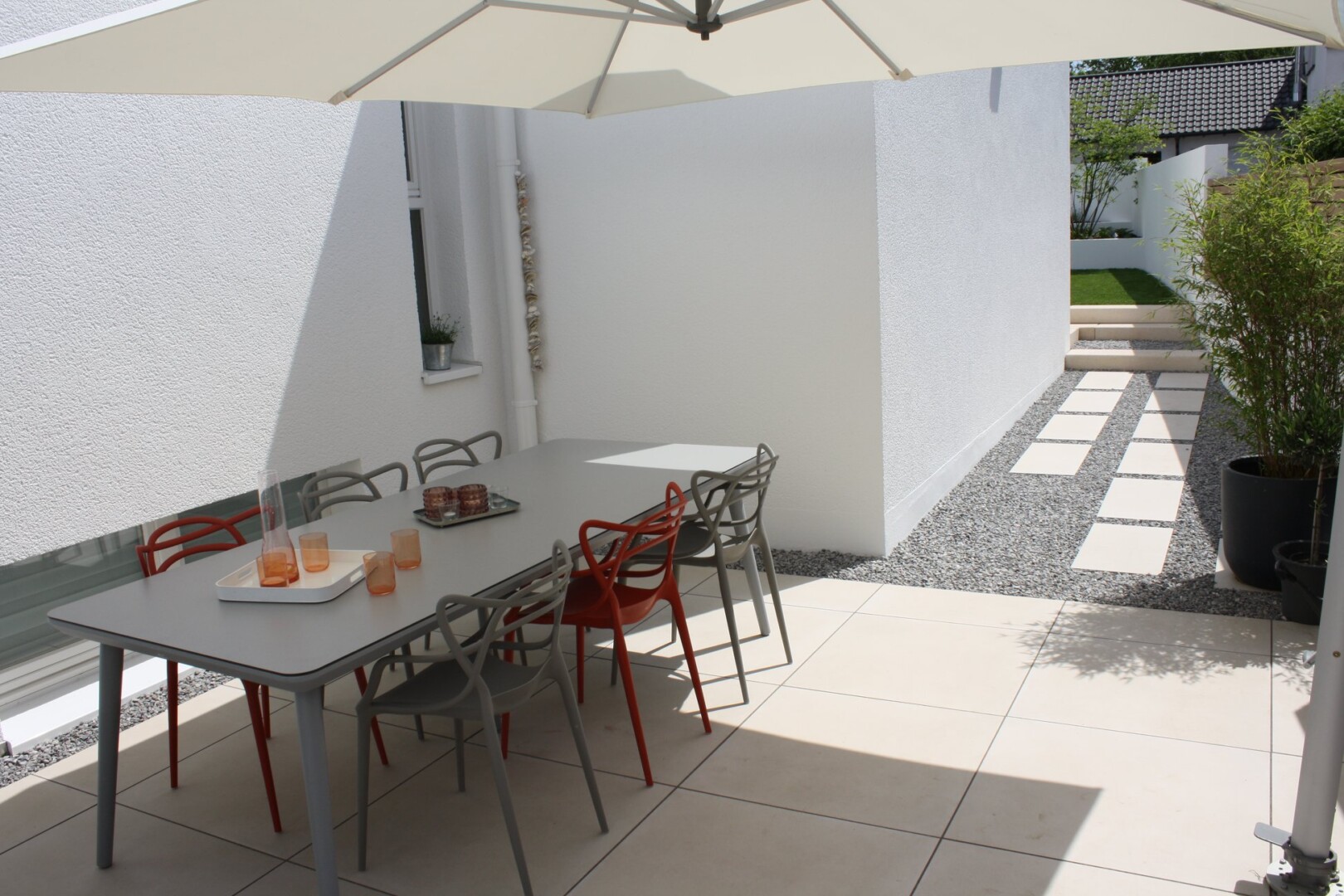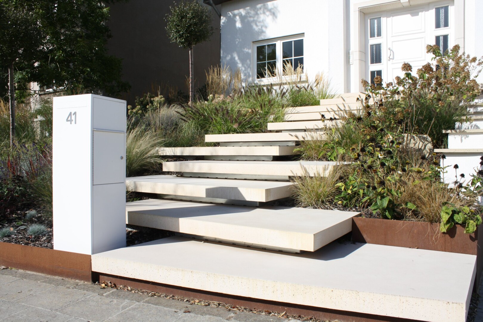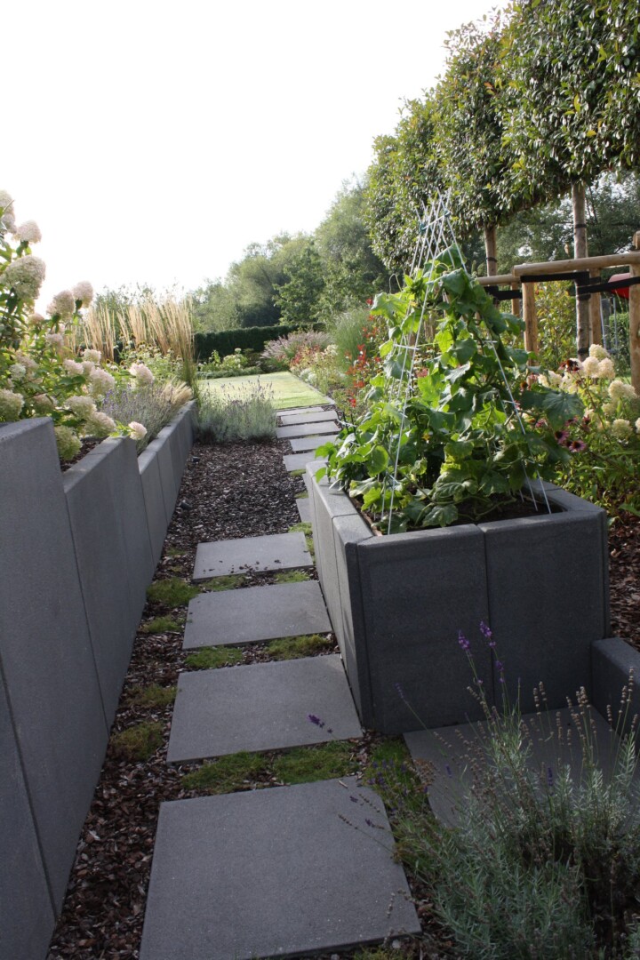 - Großformatplattenweg in Drainbeton